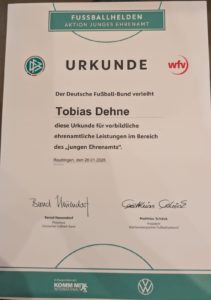 Am 26.01.2026 durfte eine kleine Delegation des SV Auingen in den Achalmhof nach Reutlingen kommen um an der Ehrenamts -Preisverleihung des WFV teilzunehmen. Wir hatten Tobias Dehne in der Kategorie “DFB- junge Fussballhelden” eingereicht, da er sich durch sein überdurchschnittliches Engagement beim SV Auingen auszeichnet. Im Rahmen von leckerem Essen und einem authentisch moderierten Abends durften wir den Preis des Bezirkssiegers für Tobi in Empfang nehmen. Auf ihn wartet eine einwöchige Fussballreise nach Spanien sowie ein Bildungsgutschein über 100€ beim WFV. Er konnte an diesem Abend leider nicht dabei sein, die Vorfreude auf die Reise ist dennoch riesig. Mach weiter so Tobi und vielen Dank an den @wfv_insta und @alb_wfv für die Anerkennung des Ehrenamtes.